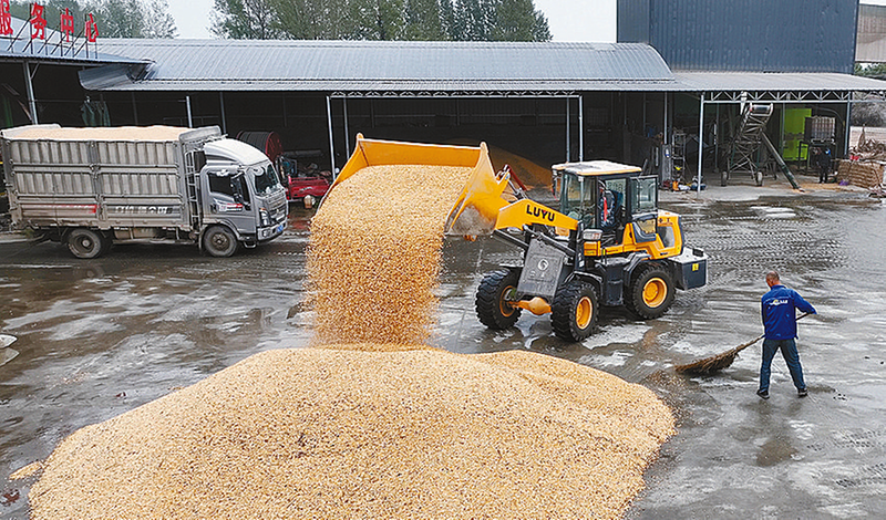 10月13日,在西平县嫘祖镇书杰专业种植合作机械化烘干中心,工作人员正在进行全天24小时不停持续作业烘干玉米。连日来,西平县持续雨天,为最大程度减少灾害损失,嫘祖镇抓住降雨间歇期,全面组织人机抢收抢烘,力争减损保粮。
