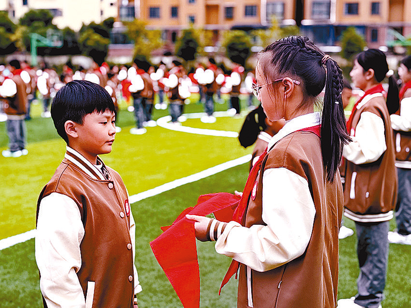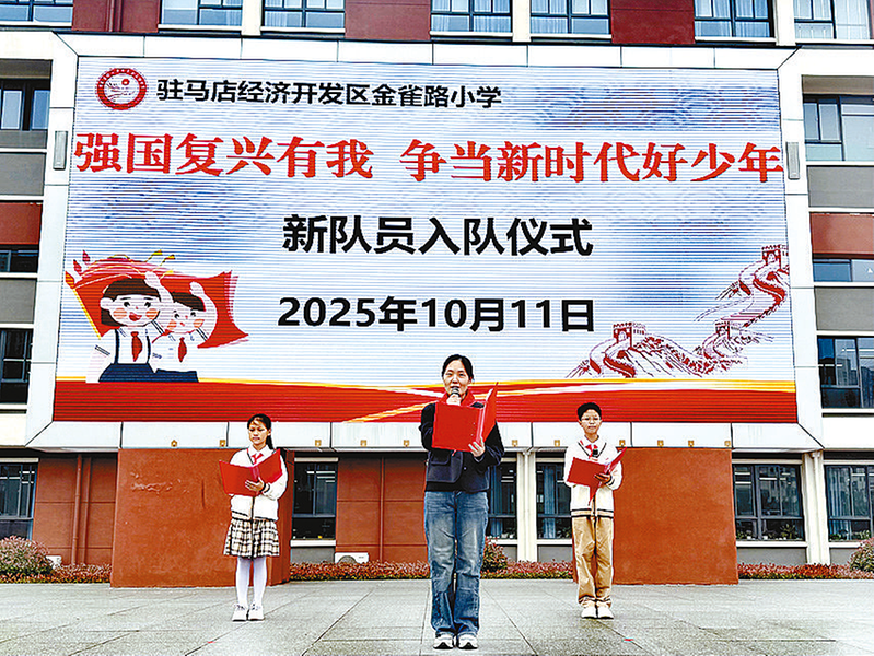 10月11日,驻马店经济开发区金雀路小学校园里,队旗飘扬、歌声嘹亮,一场充满庄严与感动的新队员入队仪式温情启幕(如图)。