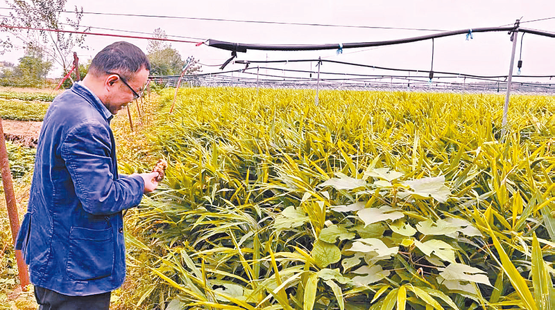 本报讯(文/图 全媒体记者 熊国森 通讯员 刘福丽)近日,记者在新蔡县韩集镇连庄村生姜种植试验田看到,连片的姜苗整齐划一,绿意盎然、长势喜人(如图)。