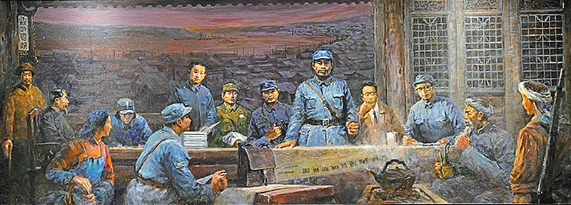 杨永安所作大型油画《保卫湘潭》。 湘潭日报社全媒体记者方阳/摄 湘潭日报社全媒体记者 王芮 吴新春 李泽兰