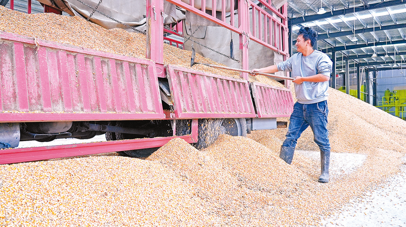 卸粮现场 本报讯(文/图 全媒体记者陈诚 张建)近日,在确山县刘店镇农业综合服务中心,四台谷物烘干机正发出沉稳的轰鸣声,吞吐着刚从田间运回的玉米。金黄色的玉米粒在传输带上匀速流动,源源不断地装入等候的货车,准备运往粮仓。