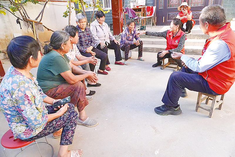 在确山县任店镇的“孝心苑”里,志愿者在陪老人聊天。 (资料图) 全媒体记者刘金霞