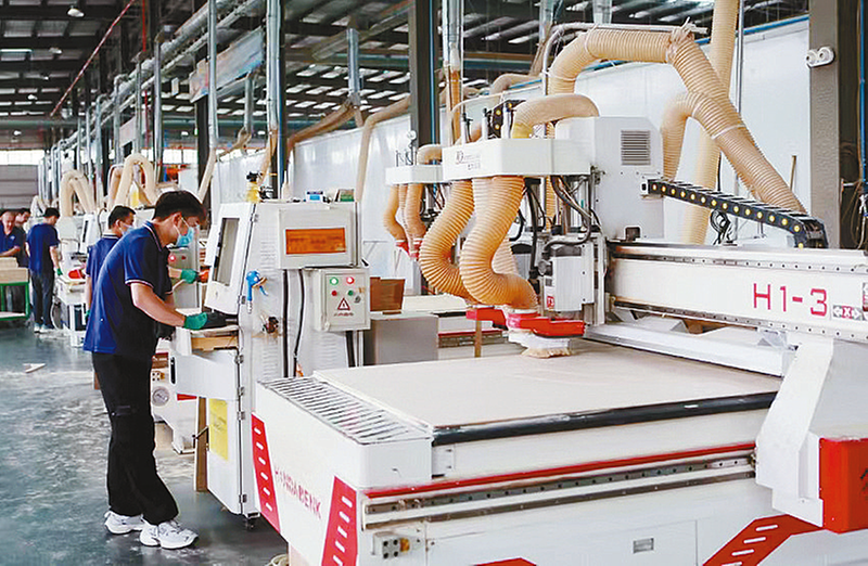 近日,记者走进该公司生产车间,看到一派繁忙景象:智能化生产线高速运转,机械臂灵活翻转,工人配合默契,正完成一批批中餐桌、烤肉锅等环保餐饮产品的订单。