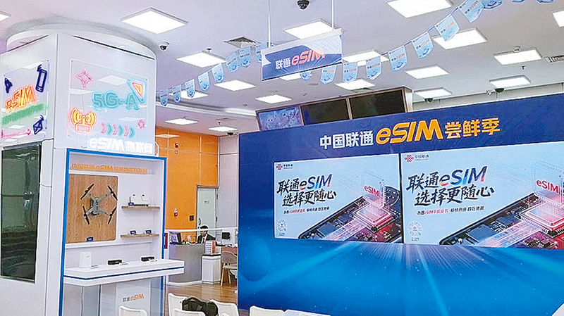 中国联通北京西单营业厅内的eSIM业务展示。(中国联通供图)