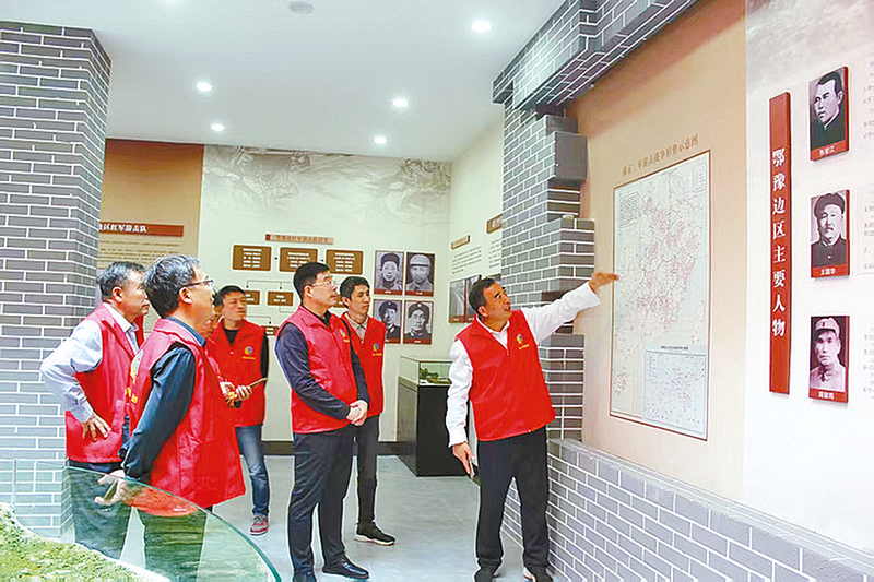 志愿者在竹沟革命纪念馆研讨革命遗址相关史料    (资料图片)        全媒体记者 刘金霞