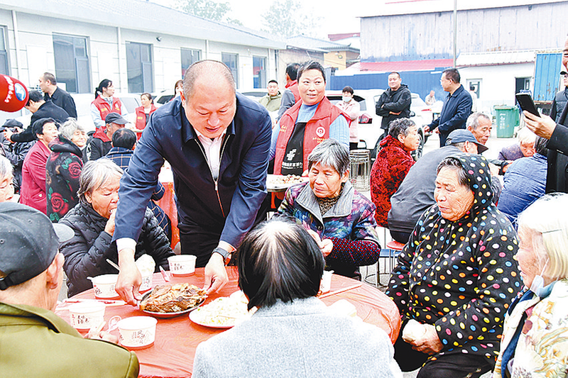 活动现场,村里70岁以上的老人被邀请至特设的宴席区,志愿者们忙碌地为老人们端上美味可口的菜肴(如图)。“这么大年纪还能和这么多老伙伴一起吃饭看戏,真开心!”一位耄耋老人拉着志愿者的手,脸上洋溢着幸福的笑容。长寿宴现场洋溢着浓厚的节日氛围和浓浓的敬老之情。