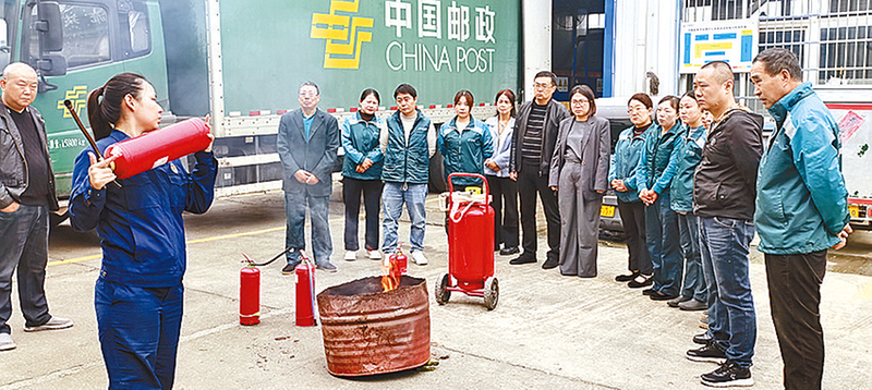 日前,汝南县邮政分公司联合汝南县应急管理局、汝南县消防大队在邮件处理中心开展消防演练。