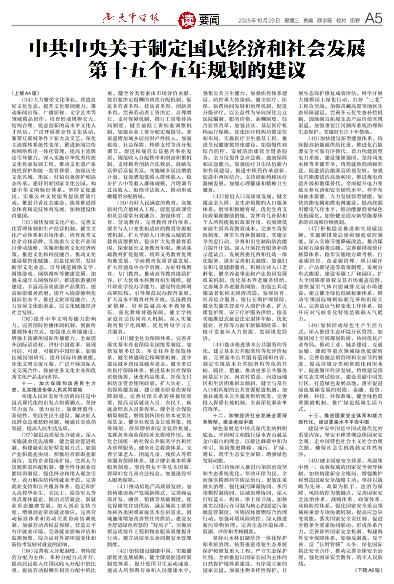 中共中央关于制定国民经济和社会发展第十五个五年规划的建议