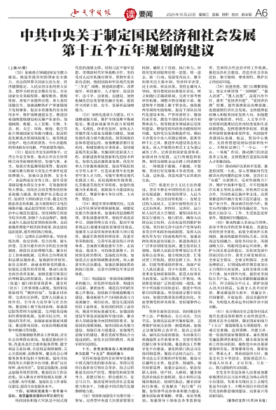 中共中央关于制定国民经济和社会发展第十五个五年规划的建议