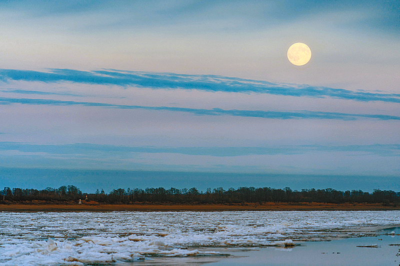 11月5日在黑龙江嘉荫段拍摄的“超级月亮”(无人机照片)。