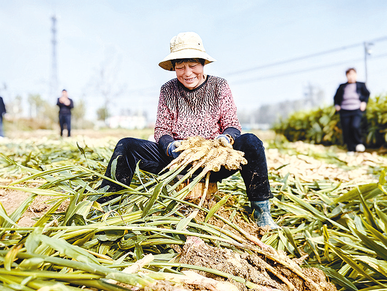 “今年姜的产量高,块块壮实得像拳头,皮色油亮,掰开一瓣,辛香直冲脑门儿!”赵桥村种植户赵勇笑得合不拢嘴。据悉,水屯镇已建成生姜种植示范基地3个,带动全镇200余户农户增收致富,生姜产业已成为乡村振兴的“金疙瘩”。