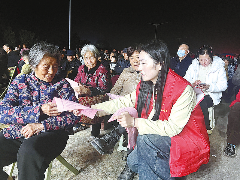 11月3日,驿城区朱古洞乡在柴坡村举办文化惠民活动,邀请河南豫剧院青年团为村民演出。演出开始前,乡政府组织志愿者开展“映前十分钟”移风易俗宣传,倡导文明新风。