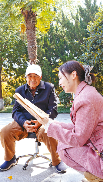 阳光洒在老人身上,地面上的字迹渐渐被风吹干,但孙光显对生活的热爱与诗意,深深印在了每个人心里。
