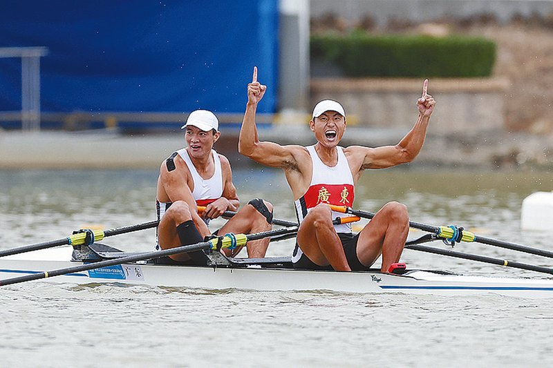 广东队选手倪旭林/聂毅德夺得赛艇男子双人双桨冠军