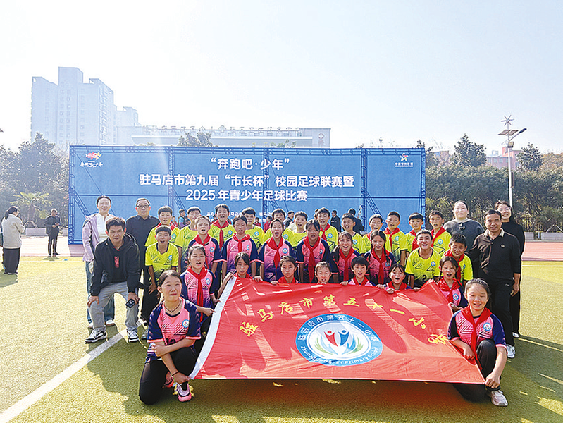 近日,驻马店市第五十一小学组织学生参加了驻马店市第九届“市长杯”校园足球联赛。本届赛事不仅是一场竞技的盛会,更是一堂生动的“成长实践课”。该校小队员们在绿茵场上挥洒汗水、团结协作、勇于拼搏,每一滴汗水,都化为了今日胜利的甘霖,充分展现了该校学子昂扬向上的精神风貌和强大的团队凝聚力(如图)。