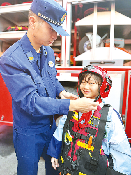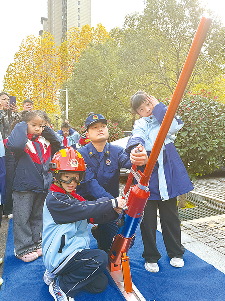 “这是液压扩张钳,能在救援中撑开缝隙救人”“这件消防服重达几十斤,能保护我们抵御高温和危险”,消防救援人员一边演示一边讲解,还邀请小记者们亲手触摸、试穿简易消防装备,让大家在亲身体验中直观感受消防器材的“威力”与消防工作的不易。