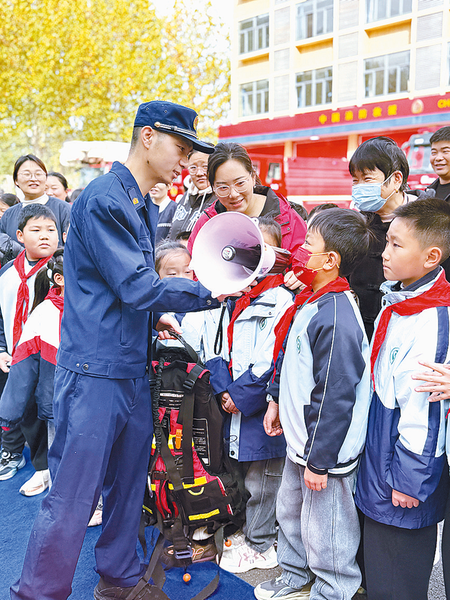 今年11月是全国第34个消防安全宣传月,为切实增强小记者们的消防安全防范意识,筑牢消防安全“防火墙”,提升自防自救能力,11月9日,驻马店市开发区实验小学天中晚报的小记者们怀着好奇与崇敬之心,走进市城乡一体化示范区消防救援大队,开启了一场“沉浸式”消防研学之旅,在零距离接触消防、学习消防中,把安全知识深深植入心中。
