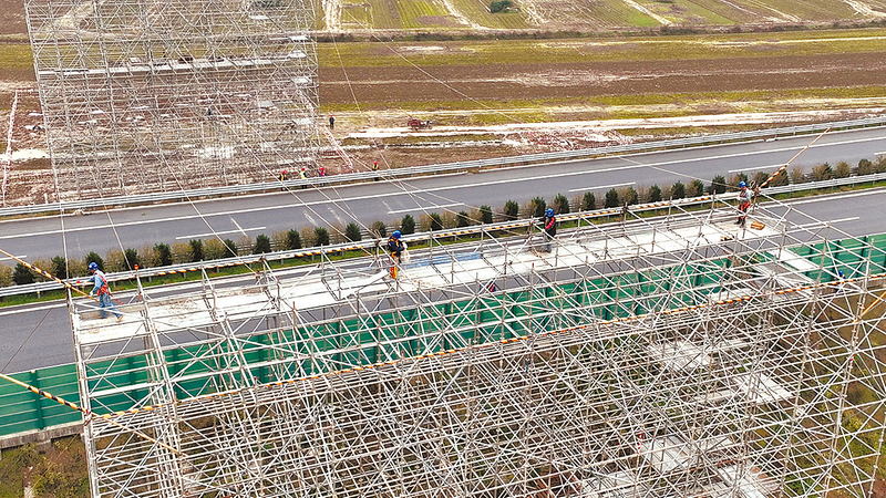 据工程负责人介绍,为顺利完成此次跨越施工,业主项目部多次组织参建单位到现场进行勘查、讨论并制订施工方案,决定采用承插型盘扣式钢管跨越架封网施工,并组织专家论证审核,优化施工方案,在保证安全的前提下,最大程度减少高风险施工时间。施工前,该公司组织3个项目部对现场全面排查,消除安全隐患,同时积极与当地村委协调进场道路、青苗赔偿等相关事宜,加强与高速管理等部门沟通对接,顺利完成施工许可办理,并在高速公路交警(路政)配合下,实施道路临时全封闭,进行线路跨越施工。