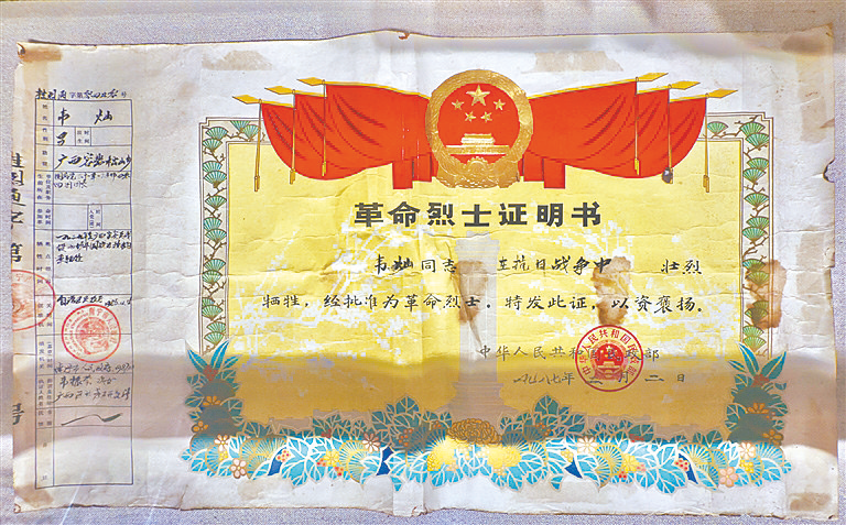 昆仑关战役博物馆收藏的烈士证书
