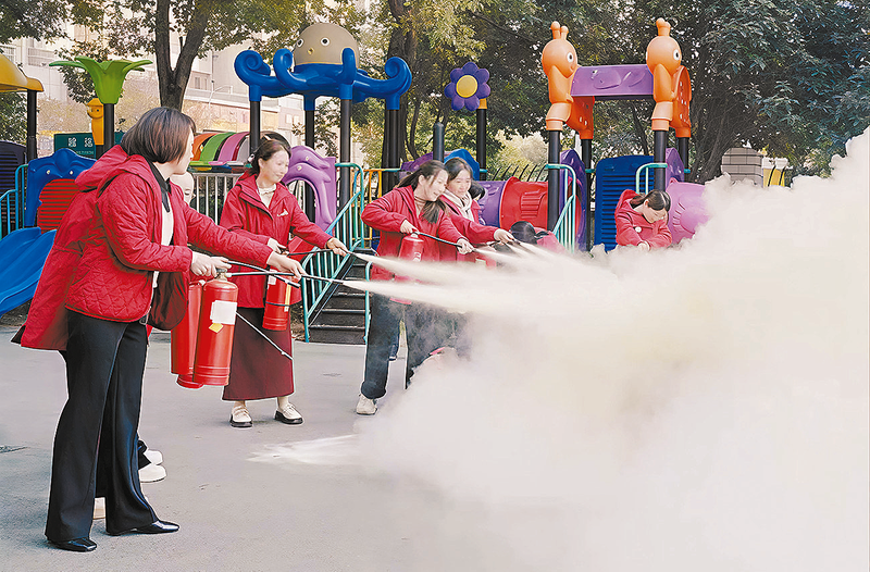 本报讯 日前,驻马店市实验幼儿园邀请市开发区消防救援大队宣传员王纯,为全园教职工开展消防安全知识和灭火器实操培训(如图),切实加强全园消防安全工作,提升全体教职工的消防安全意识和应急处置能力。
