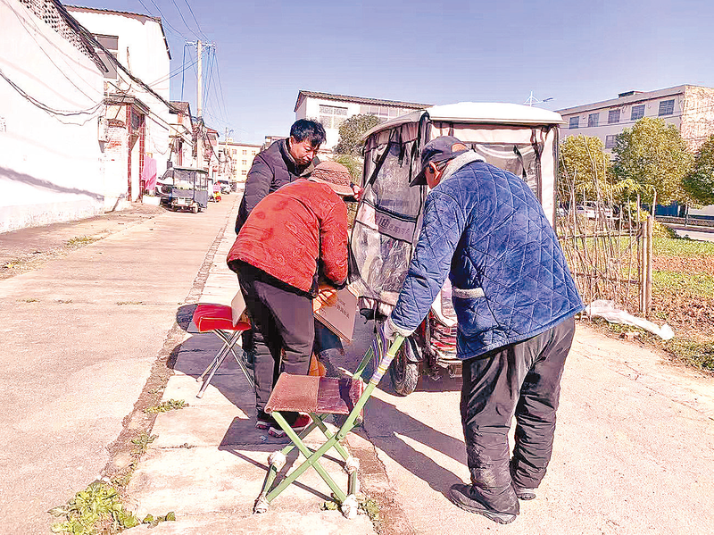 “大爷、大娘别着急,我来帮你们。”张永军轻声安抚着老人的情绪,随即展开救援。他小心翼翼地俯下身,先将坐在后排的老太太轻轻抱起,安置在路边安全的区域,又转身回到老汉身边。考虑到老汉有残障,动作稍重可能造成二次伤害,张永军屈膝跪地,一边耐心叮嘱“您别用力,我扶着您”,一边缓缓将老人从车里搀扶出来。待两位老人坐稳后,他又和同行人员一起将侧翻的电动三轮车扶正,仔细检查车辆是否存在安全隐患,确保老人后续出行安全。
