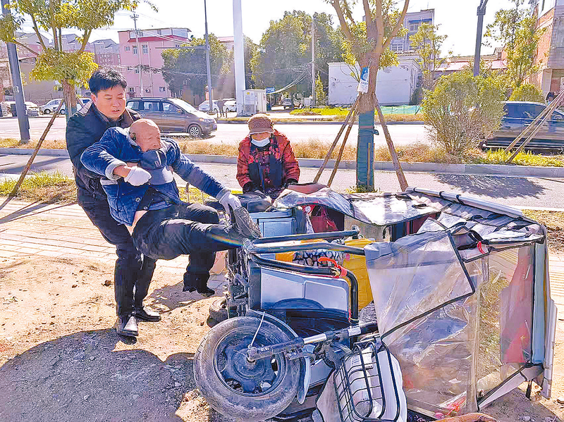 张永军将两位老人救出 本报讯(文/图 全媒体记者 王永良)11月18日上午,驻马店经济开发区天中救援队副队长张永军驱车赶往汝南县,准备参加儿子的定亲仪式,途中看到一辆电动三轮车侧翻,两位老人被困车里,他毫不犹豫挺身而出,救出两位老人,其善行义举温暖了受助老人。