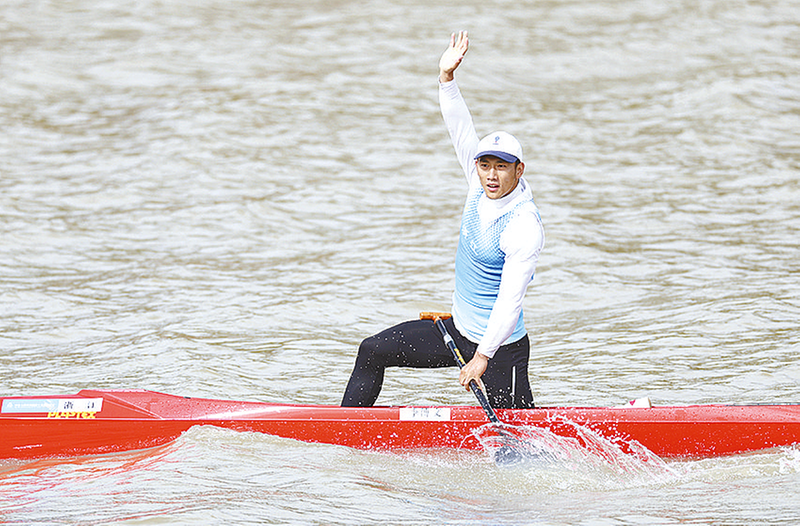 当日,第十五届全国运动会皮划艇静水项目男子1000米单人划艇决赛在广州举行。