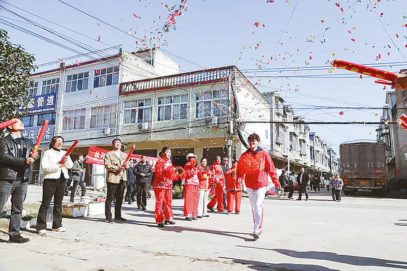 乡亲们敲锣打鼓欢迎骆书艳载誉归来