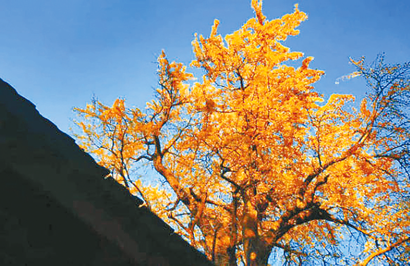 身披“黄金甲”的千年银杏树为古寺带来了超高人气,有效带动了当地乡村旅游和文化旅游。游客和摄影爱好者蜂拥而至,合影留念,将这份转瞬即逝的美景永久定格。 (王建成)