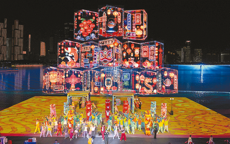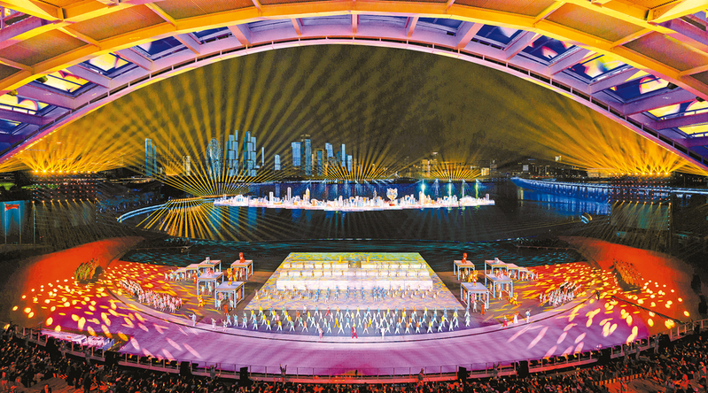 演员在闭幕式现场表演 新华社记者 殷博古/摄 星空作幕,路桥为画。前海湾畔,灯火万家。