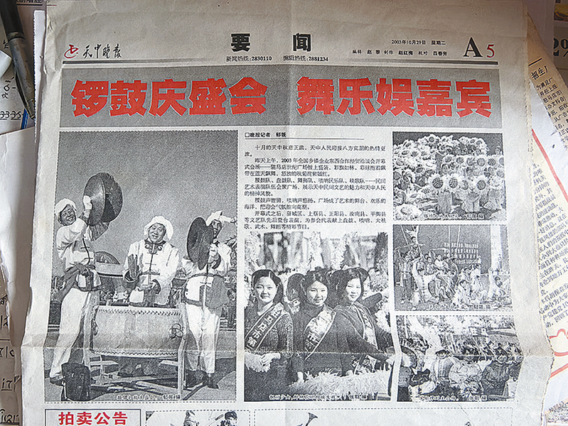 2003年的晚报刊登胡保森敲着大鼓的照片