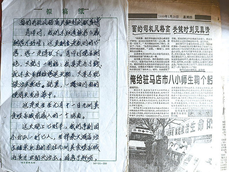 说着,胡保森起身从柜子里小心翼翼地翻出一摞珍藏的旧报纸,很多纸页已经泛黄,有重要会议新闻,还有他与报纸的专属回忆:2003年全国乡镇企业东西合作经贸洽谈会开幕式上,敲着大鼓的他被镜头捕捉;在市区世纪广场拉二胡的身影,也被记者定格登报;就连当年投稿见报的报纸和手写原稿,以及工作时作为通讯员发表的新闻消息,他都完好地保存着。提及与《驻马店日报》和《天中晚报》的故事,胡保森滔滔不绝。