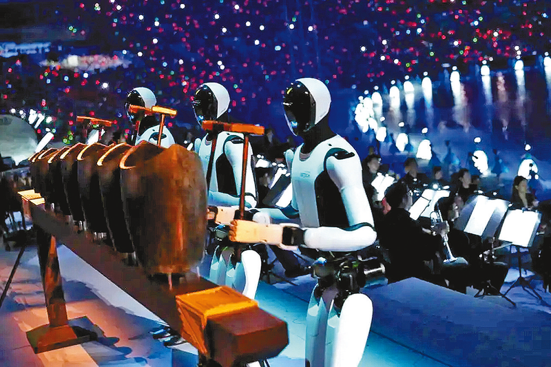 11月9日,机器人在第十五届全国运动会开幕式现场表演。