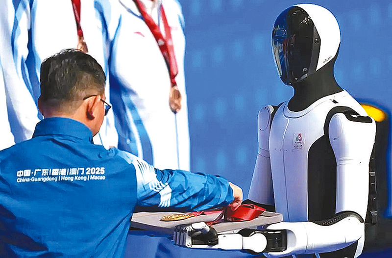 颁奖仪式上,人形机器人以毫米级的精准度,将奖牌稳稳递到颁奖嘉宾手边。