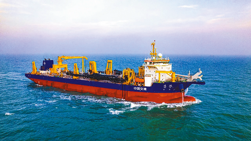“通浚”轮在进行海上航行试验 新华社发(中交天航局供图)