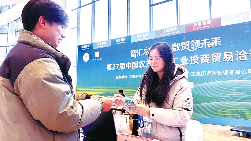 11月27日,在驻马店国际会展中心,各展厅布展工作已接近尾声,工作人员正在为参展客商发放证件。