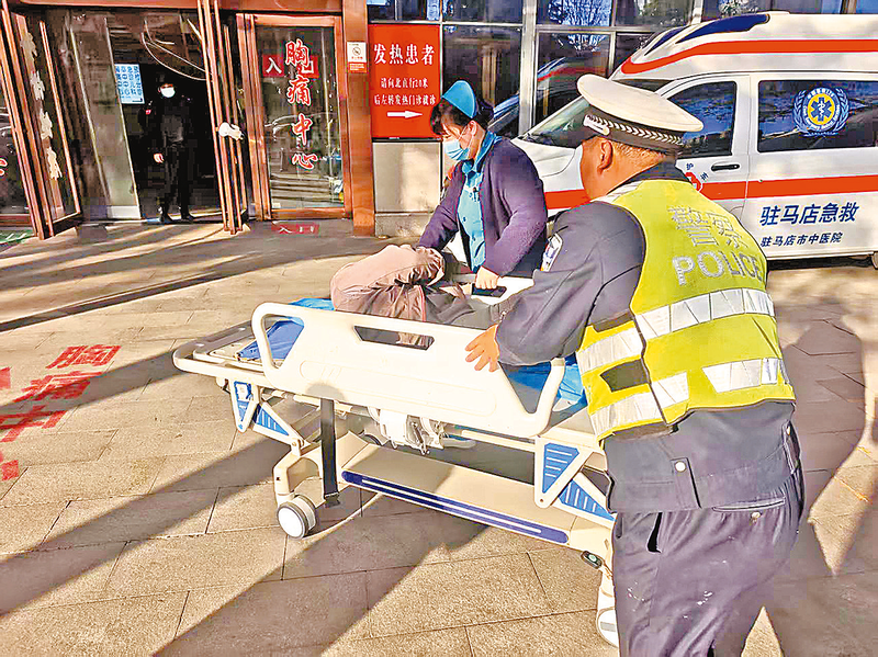 本报讯(文/图 全媒体记者刘金霞 通讯员 吴蕴)11月29日8时54分,高新区交警大队执勤人员胡哲瑜、党雨祥、杨帅在辖区路面执勤时,接到信阳牌照车辆车主的紧急求助。车主心急如焚地说,车内一名乘客因心脏突发不适陷入休克,需立即送往医院救治,情况十分危急。