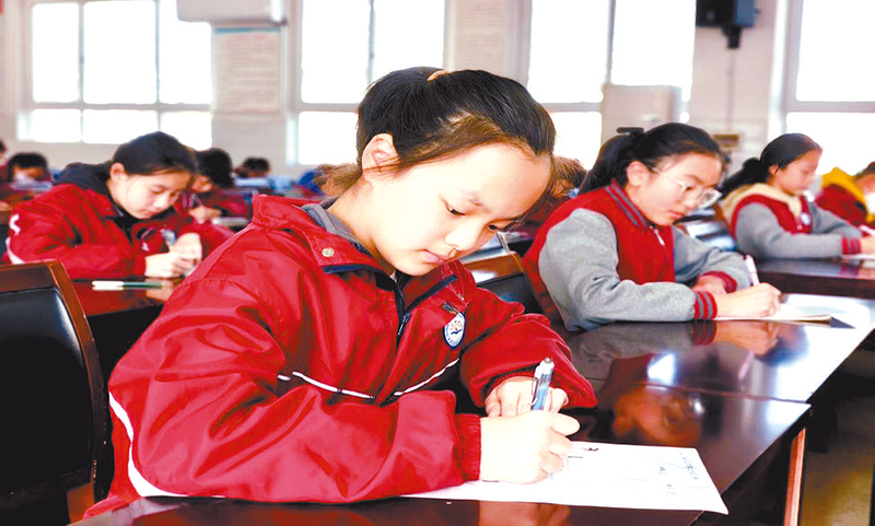 赛场内雅静有序,墨香暗涌。同学们坐姿端正如松、握笔标准如画,神情专注而笃定,在横平竖直间精进规范、锤炼功底。他们深谙间架结构的匀称之道,笔锋舒展有度、笔画清劲有力,字体或如春日柳丝般端庄秀丽,或如寒松劲竹般刚劲挺拔。一笔一画是对笔画规范的极致恪守,一撇一捺是对结构准则的精准拿捏,墨香在笔尖缓缓蔓延,规范书写的汉字于纸上绽放出兼具秩序之美与文化韵味的独特光彩。