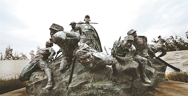 枣宜会战张上将同难官兵公墓前雕塑 襄阳融媒体中心全媒体记者 刘晓青 廖双来