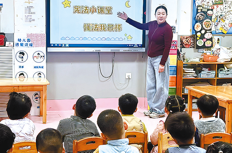 同时,该幼儿园充分利用微信公众号、电子屏等媒介,向家长普及宪法知识,倡导家长以身作则,为孩子树立遵法守法的榜样。
