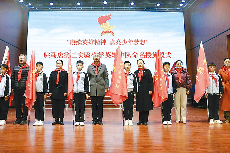近日,驻马店第二实验小学礼堂内队旗猎猎、队歌嘹亮,一场主题为“赓续英雄精神 点亮少年梦想”的英雄中队命名授旗仪式举行。