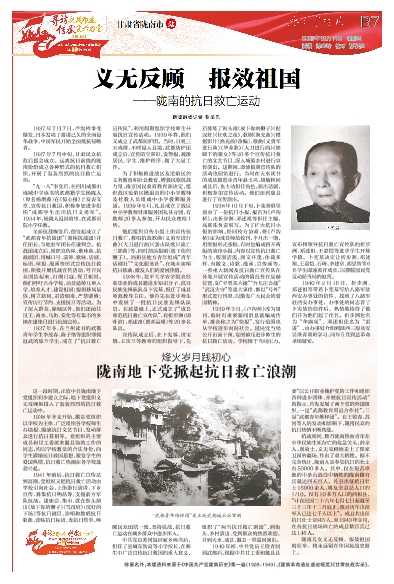 陇南地下党掀起抗日救亡浪潮