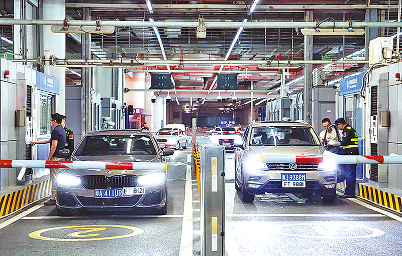 12月23日零时,“粤车南下”入境香港市区的首批通关车主在“一站式”通道办理通关手续。