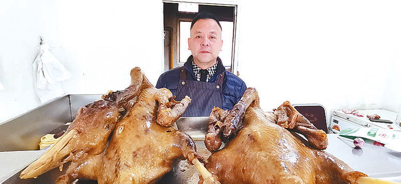 卤汤是另一个秘诀。十几种香辛料按比例配好,装在纱布袋里吊在锅里,“这包香料3天一换,老汤越熬越醇。”徐耀林舀起一勺汤,琥珀色的卤汁挂着油花,“刚开始学卤鹅,我把糖放多了,整锅都苦了。亲戚骂我‘没数’,我就蹲在灶前守了3天,记笔记、尝味道,才摸出门道。”