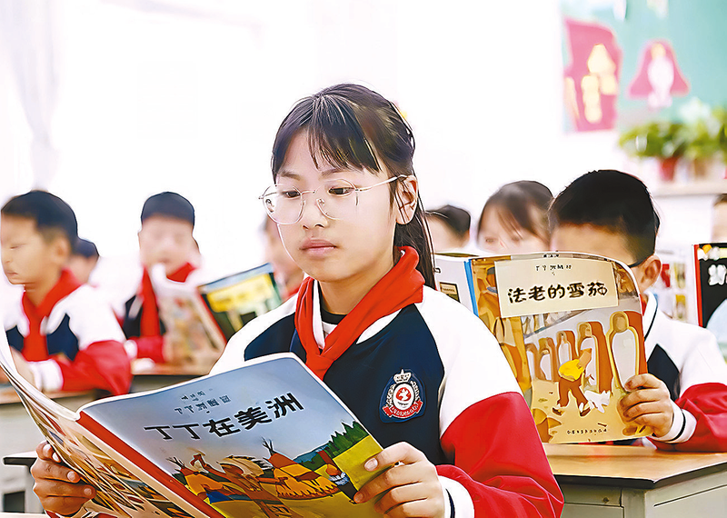 该校学生在认真阅读。 本报讯近日,河南省教育厅公布了2025年河南省中小学“书香校园”典型案例认定名单,驻马店实验小学凭借卓越的书香校园建设成果脱颖而出,成功上榜。这一荣誉不仅是对该校多年来坚持推动阅读教育的高度认可,更是其在教育领域持续深耕、不断创新的有力见证。