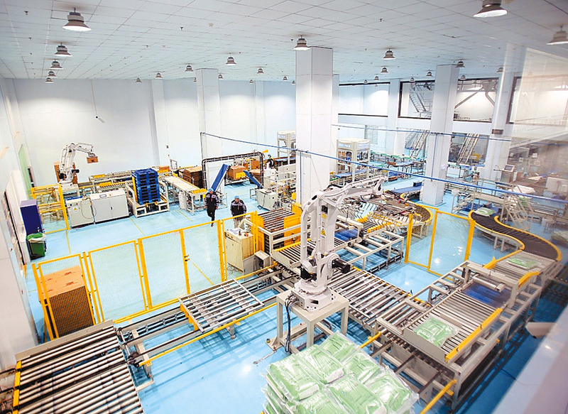 12月25日,记者走进中国(驻马店)国际农产品加工产业园(宠物食品产业园),看到入驻企业河南宠世纪宠物食品有限公司生产车间内,全自动化生产线高速运转,智能机械臂精准操作,传送装置有序流转,工人们在质检、包装等关键岗位忙碌作业(如图)。计量、分装、封口、装箱等工序在流水线上连贯完成,浓郁的粮香弥漫整个车间。一袋袋刚下线的宠物食品被打包、码放整齐,即将发往全国各地。
