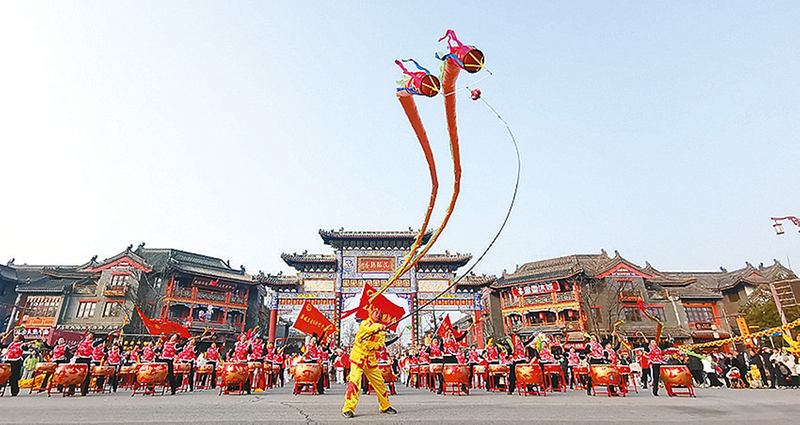 1月1日,皇家驿站内锣鼓喧天、彩龙腾飞,一场激情洋溢的鞭陀龙鼓展演在此火热上演。