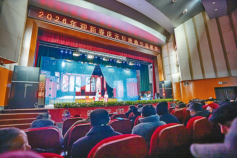 豫剧经典剧目韵味醇厚,铿锵锣鼓伴着精湛表演尽显戏曲魅力,现场群众在戏曲中庆祝元旦。