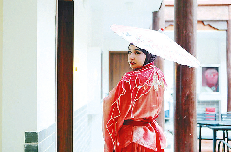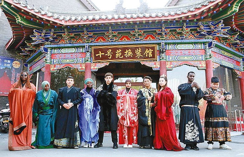 外籍学生身着汉服,体验中华传统服装魅力。