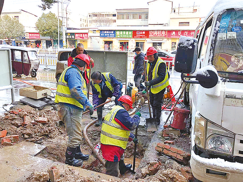 中业自来水公司抢修队伍接报后,第一时间带着专业设备赶赴现场。抢修人员顾不上天气寒冷,设置安全警示标识,对漏水点进行精准排查。他们双手被冻得通红,却始终专注于手中的操作,争分夺秒地推进抢修进度(如图)。